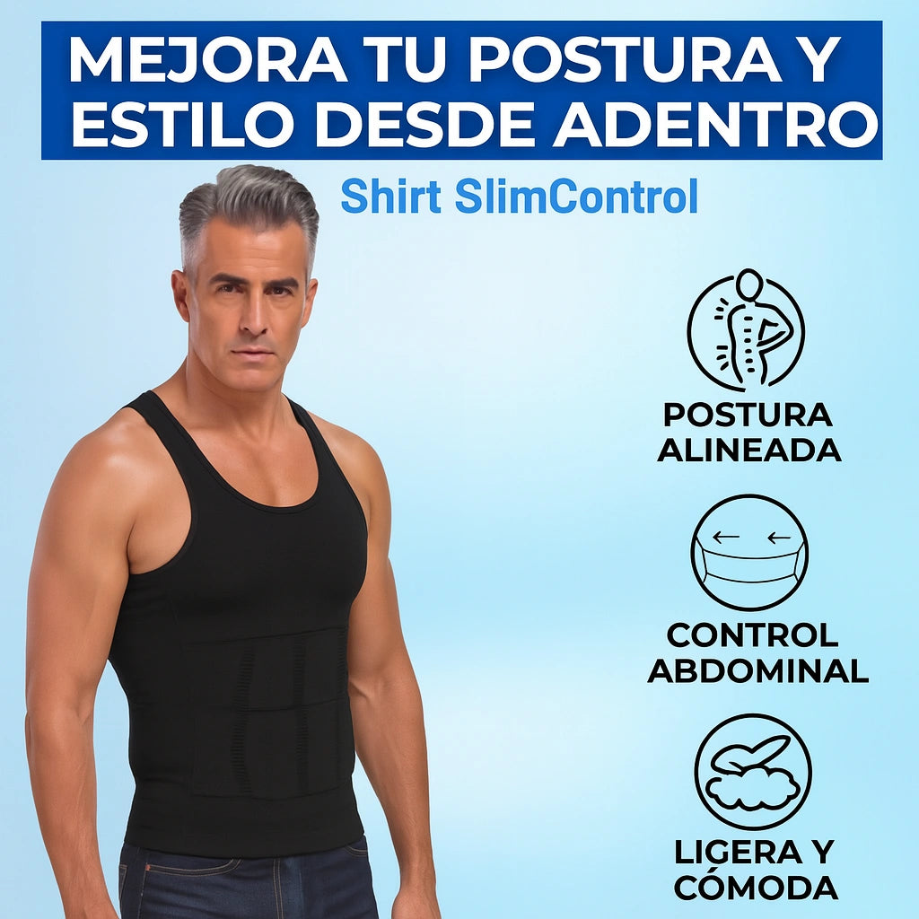 Shirt SlimControl aplica compresión estratégica en abdomen, zona lumbar y torso superior. ¿El resultado?